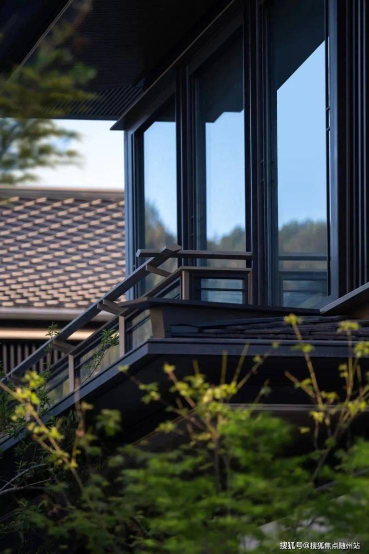 至于传统中式建筑的短板,也被一一化解:白墙易脏?它用温润的米白色石材替代;中式窗小?它改以大面积落地窗引山光入室;木构难久?它以桃木色铝板重构古韵,兼得审美与耐久……