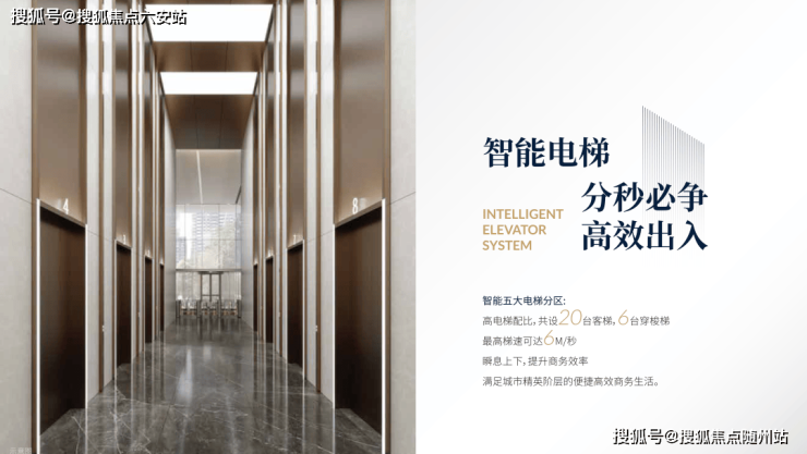 高电梯配比,共设 20 台客梯,6 台穿梭梯