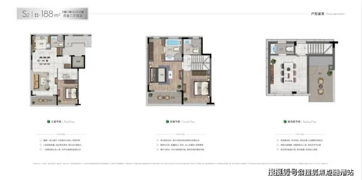 上叠主力户型约188-195㎡,户型窗墙比超60%,星空双露台,明朗阔绰;可配地下空间,生活收放自如。