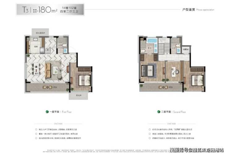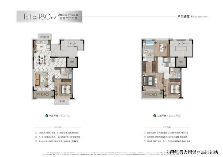 下叠主力户型约180㎡四房三卫,大面积落地玻璃,户型窗墙比超60%,通透敞亮;每户均带南向庭院(约50-60㎡,部分可达100㎡),并创意性做了地下空间。