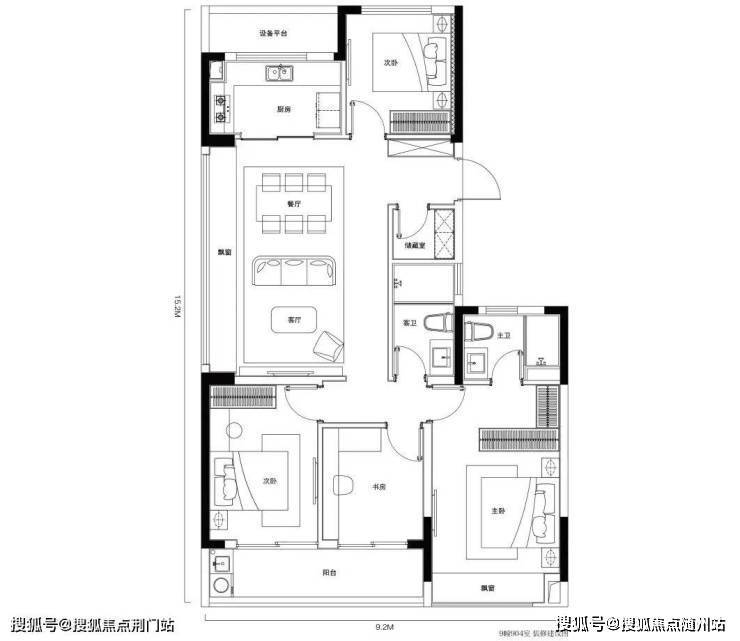 约105㎡难得设计出一体化餐客边厅,同样带约6.5米的少见长阳台; 约128㎡是更宽舒的四房两卫,拥有近30㎡开阔边厅和三房朝南明媚格局,入户还有储藏间。
