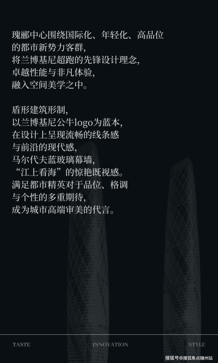 是杭州之门后,奥体落成的海拔第二高双塔(约250米),外号“小杭州之门”。瑰郦中心L-VILLA位于T2塔楼,12层的裙楼就是托尼洛·兰博基尼酒店。