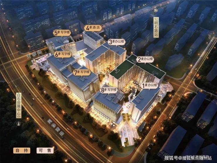 明石路站𝟐𝟒𝟎米、全业态综合体,约8万方办公、约2万方商街、约1200套酒店式办公,自持商业达75%。