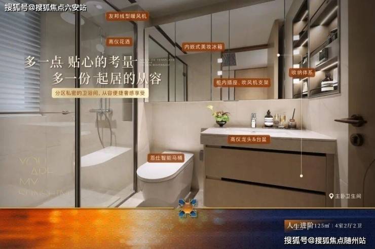 卫生间搭配高仪三件套(龙头、台盆、花洒)、恩仕智能马桶、友邦线型暖风机,细节处尽显人性关怀,品质感油然而生。