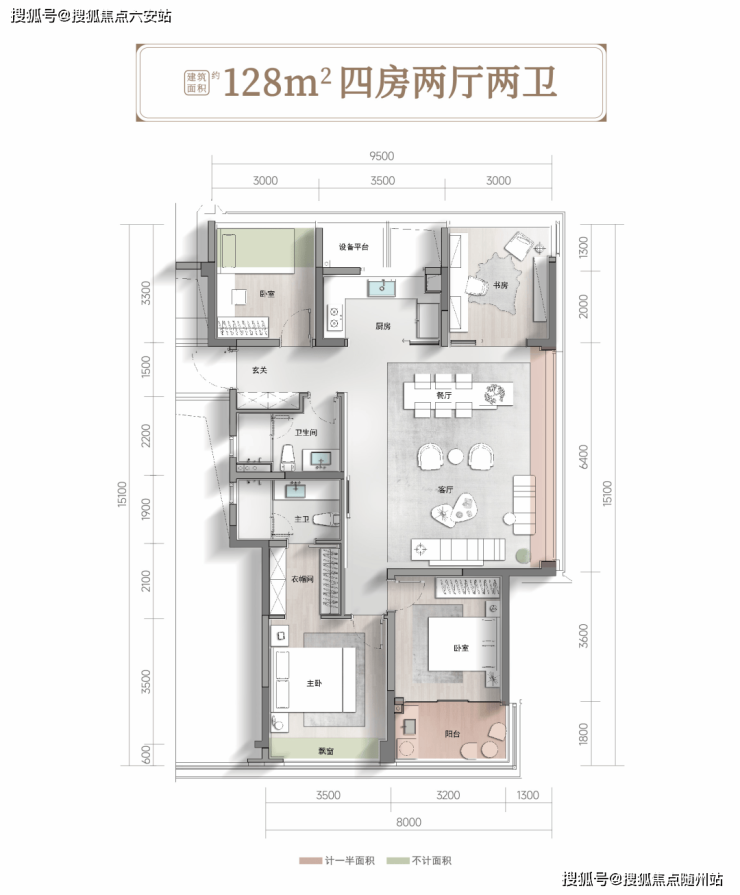 △约128㎡户型样板房展示示意图