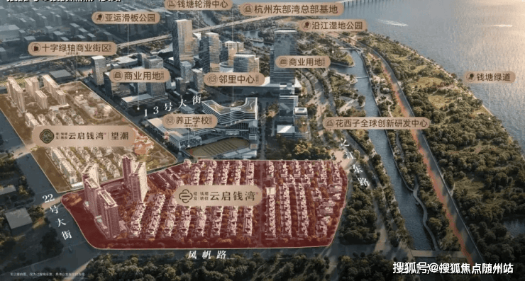 建发云启钱湾望潮并非孤立的社区,而是东部湾新城“江园连城”城市规划中的核心组成部分。项目所在的金沙嘴组团,整体规划打造约50万方的复合型生活大城,涵盖住宅、商业、公园、文体设施等多元业态,旨在为业主提供“一站式”的高品质生活体验