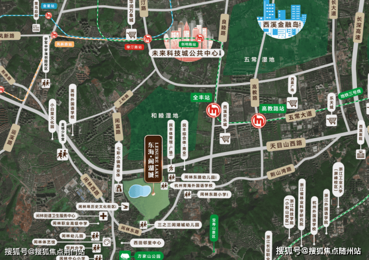 东海·闲湖城北面直线距离约3.5公里处,就是正在建设的绿汀路TOD,上盖的华润万象城正在热火朝天的建设当中;边上就是即将开建的未来科技城公共中心,共同组成了未来科技城的又一个引擎。此外,杭州西站已经通车,约399米的杭州第一高楼正在向天空生长;浙一医院一期已经开业,二期还将增加2000床位......