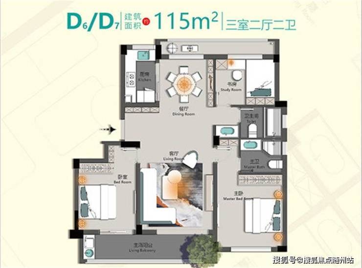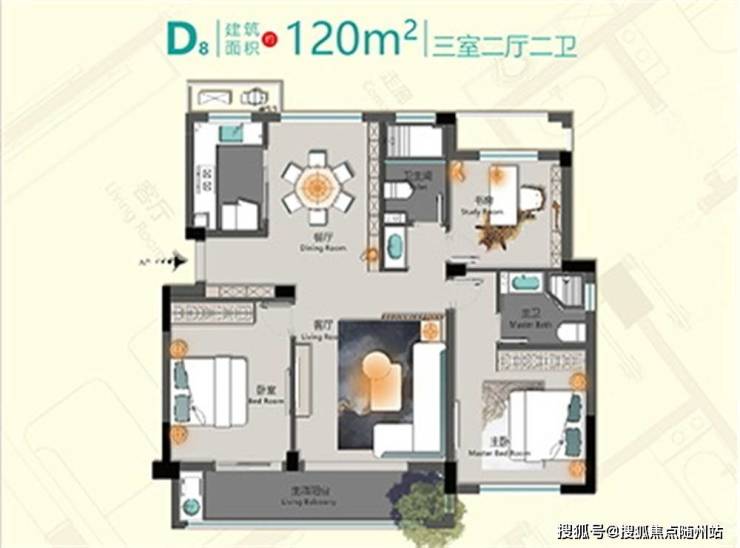 如果说90平是刚需,那么105平和120平就是舒适的代名词。105平是90平的放大版,空间更加从容;120平则拥有超大版的餐客厅,连接双阳台,无论是家庭聚会还是孩子玩耍,都有足够的空间尺度。