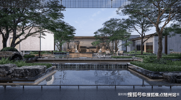 宋式园林 + 高配社区:五进归家、子母双泳池、健身房、多架空层泛会所。