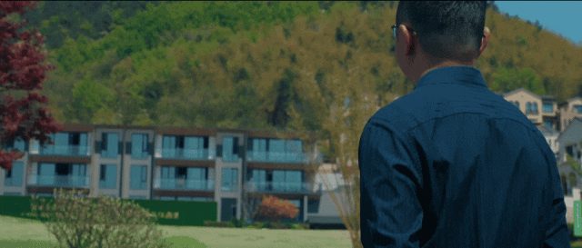 建筑整体设计创新极简约的建筑形式、轻盈的外墙、仿自然原木的铝板装饰,将整体建筑群落“消隐”在山林自然之间,构建原生态的诗意度假休闲生活。