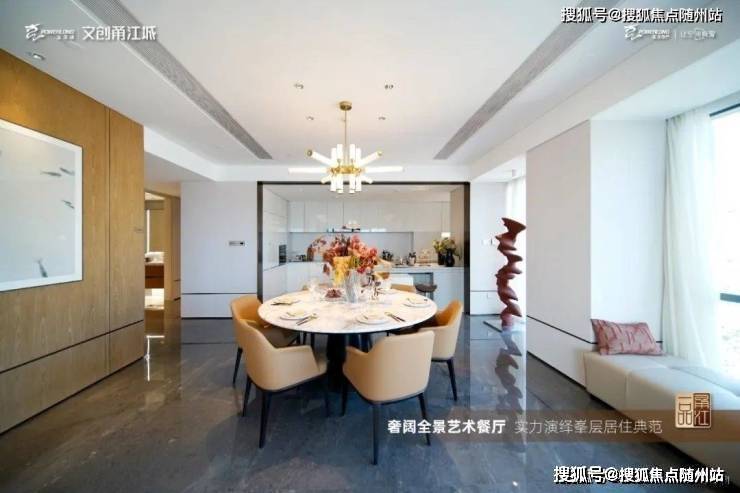 客厅大面积的落地窗更好的将疏朗的江景引入室内,☎【售楼热线】:400 816 3856 ☎⫷回流动线的设计,丰富空间节奏。设计透过色彩、家具、艺术品等选择和布置,调度动线,落实功能。打造不被格局局限并可自由切换生活场景模式的居住空间,使家庭成员们可以共享所有活动,实现更多的情感互动。