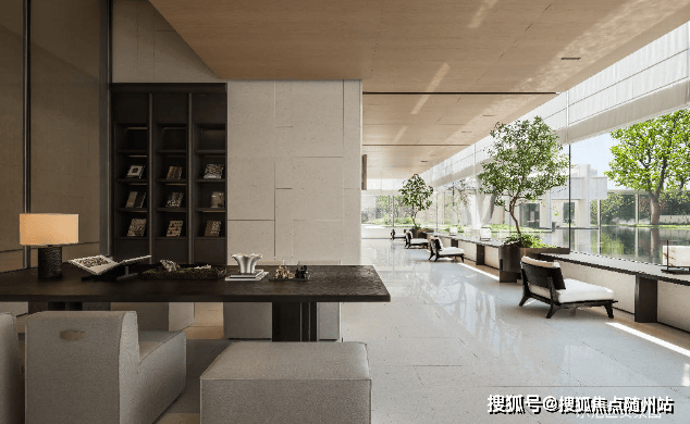 外立面:采用石材干挂与铝板工艺,搭配钧瓷陶釉类幕墙窗,兼具现代简约与艺术美感。