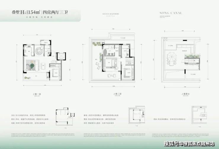 上叠大光厅、L型空间花园露台、屋顶岛境露台。