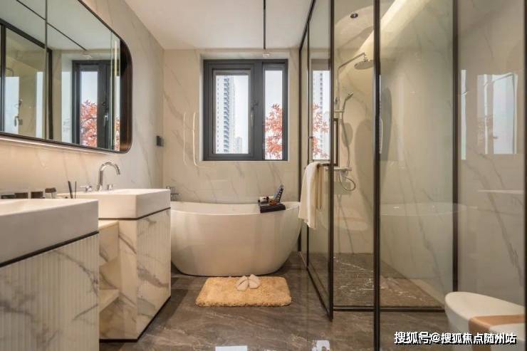 建面约146㎡做到了5开间朝南,大面宽短进深,南向阳台+飘窗面宽达约16.6m,可以做到双厅三房朝南,叠加浴缸、双台盆、休憩区等套房式主卧,这可是200㎡大平层才能达到的尺度。