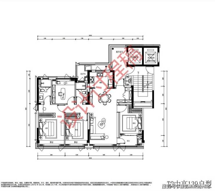 建面约109方户型图设计过程稿