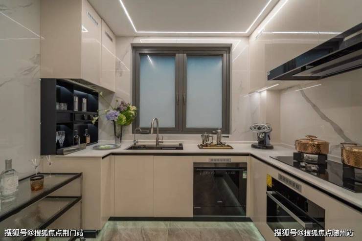 三大件「中央空调、地暖、新风」,大规格岩板背景墙。厨房方面四件套:博世「油烟机、燃气灶」、方太「洗碗机、蒸烤一体机」,以及霍尼韦尔净水器、凉霸、台面不锈钢置物架、可移动插座,小细节考虑周全。
