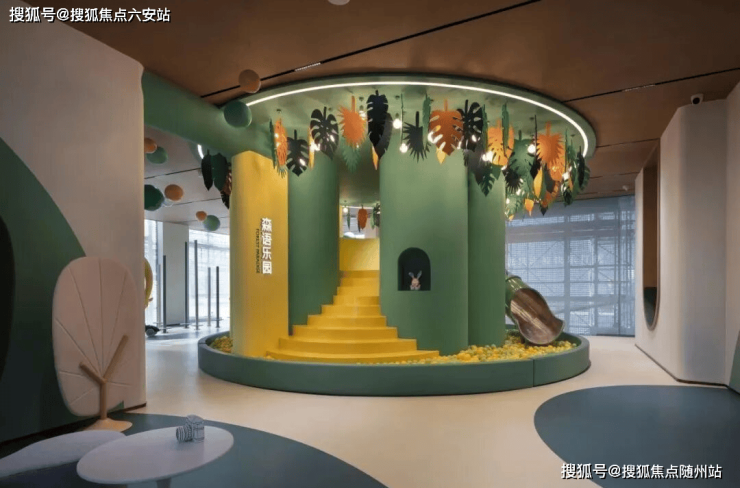 一轴四境+400㎡热带戏水池,架空层功能复合(瑜伽/亲子/阅读),改善盘配置。