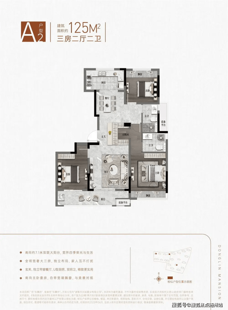 建面约129㎡三房户型:分布于4号楼、17号楼、20号楼,三开间朝南,动静分区,适合三口之家或新婚夫妇;