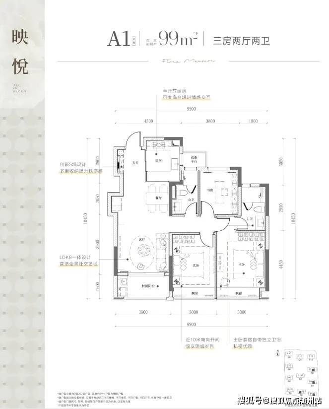 户型友好:中小户型精准匹配刚改需求,99㎡三房两卫起步,总价可控