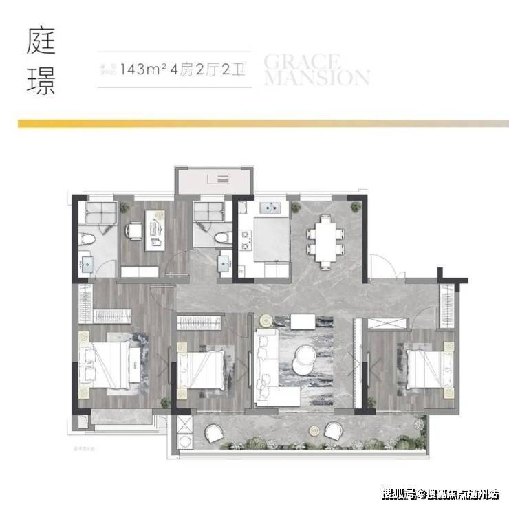 项目打造建面约103-143㎡三房、四房,所推户型均为方正通透,多开间朝南设计,采光通风优越;宽幕大阳台,视野开阔、阳光满室,在阔绰尺度之间,让居者体验步移景异的雅致园林风情。