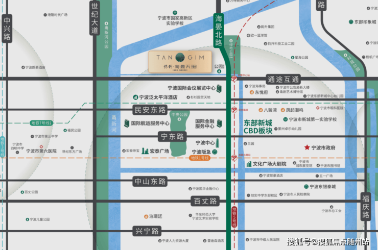 区位:宁波鄞州区东部新城核心,紧邻甬新河畔,与千亿级东部新城CBD一路之隔,南向直面宁波国际会展中心,属城市黄金地段。
