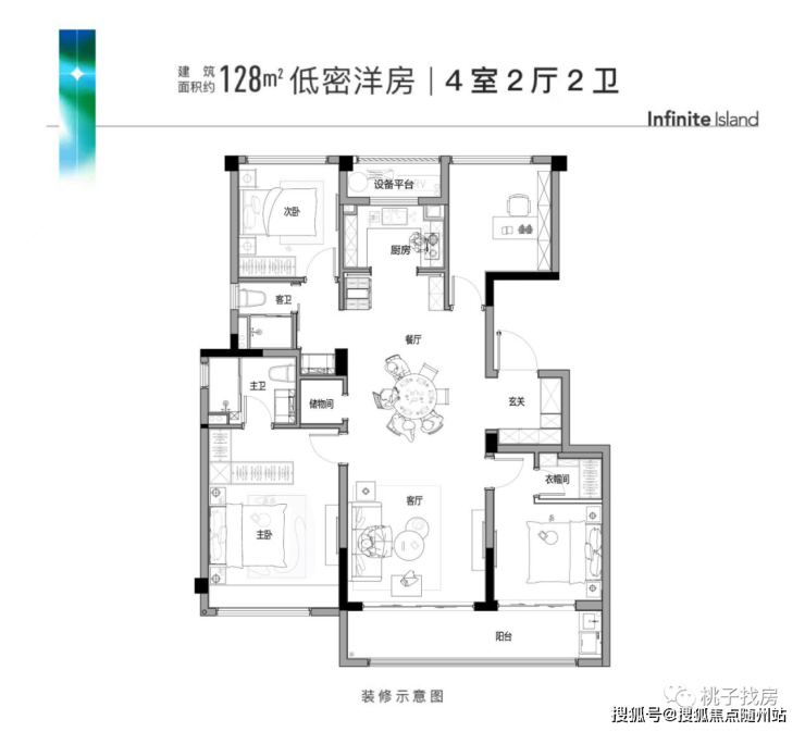建面约128㎡户型为四房两厅两卫,该户型最大亮点是超高的得房率,也是最受市场欢迎的“四叶草”户型,四个卧室互不打扰,充分保证后期的生活隐私。户型尺度上也同样阔绰,近7米的双开间阳台,2.7m宽的U型厨房,每一个小空间内都可以承载很多的生活场景。