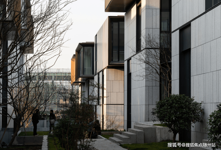 项目从“金石篆刻”与江南园林中汲取灵感,外立面融合进口石材、金属铝板与玻璃幕墙,打造兼具隐逸气质与现代美学的建筑群。
