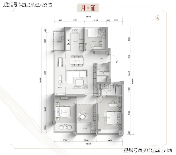 约168㎡户型进一步优化功能空间与动线,体现改善型住宅的尺度与细节追求。