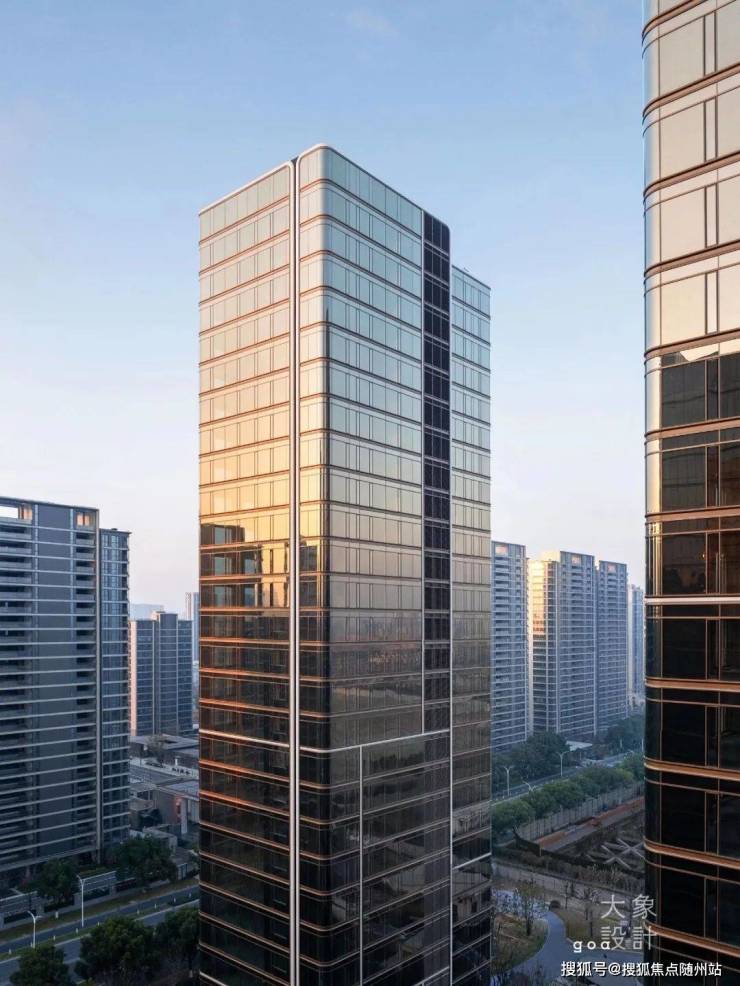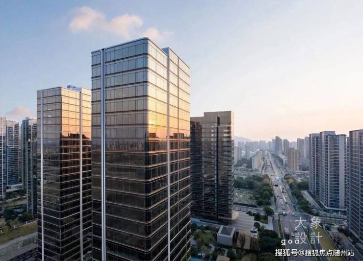 项目采用乌金色玻璃作为立面材料,其在不同时间段和天气状态下呈现丰富色彩变化,赋予建筑独特视觉表情,使运宸中心在周边环境中脱颖而出,展现出独特气质与态度。