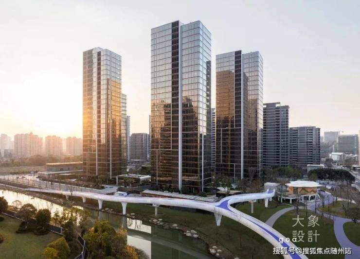 园区以中心景观大庭院为核心,通过视线通廊、景观步道和精致景观节点,实现景观的相互联系与渗透,建筑与自然景观相互呼应,成为园区重要风景线。
