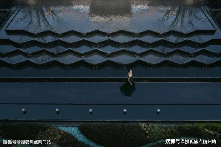 再看约1200方下沉庭院,叠水成瀑,区别于市面上大部分楼盘的“坑洞感”,形成上下两个平行空间的双层滨水度假系统,一看就很赞。