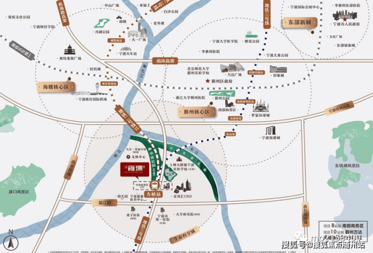 ①:地铁3号线(方桥站仅约700米)、8站南部商务区、10站鄞州万达,无缝衔接1、2、4、5号线的换乘