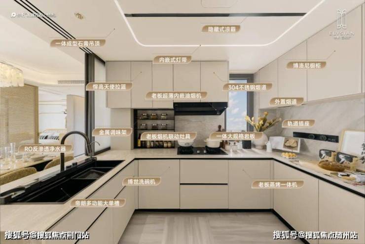 宽境社交领地:约7米开间,餐客厅分区+U型奢厨