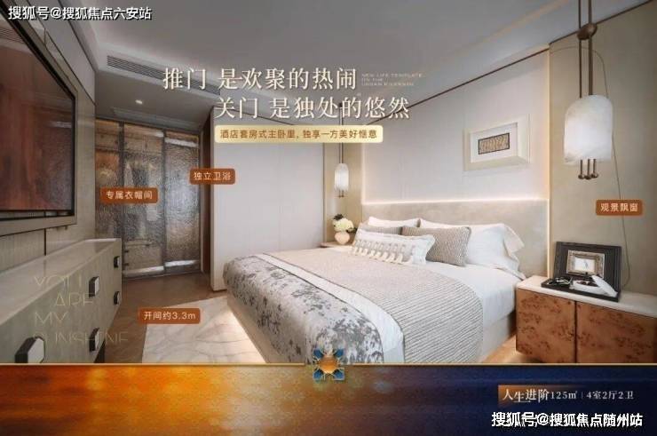 主卧以酒店套房标准,配备独立卫浴、衣帽间与观景飘窗,是二人世界的专属领域;