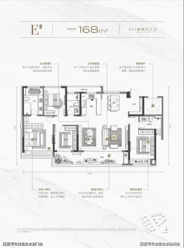四开间朝南+三面景观阳台