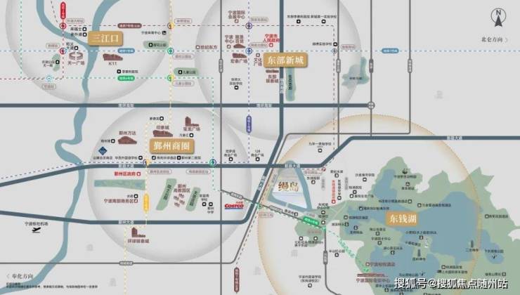 核心位置:雄踞东部新城、鄞州商圈与东钱湖板块交汇处,直线8公里直达鄞州万达、印象城等商圈,1公里内享钱湖印、开市客等顶奢配套。