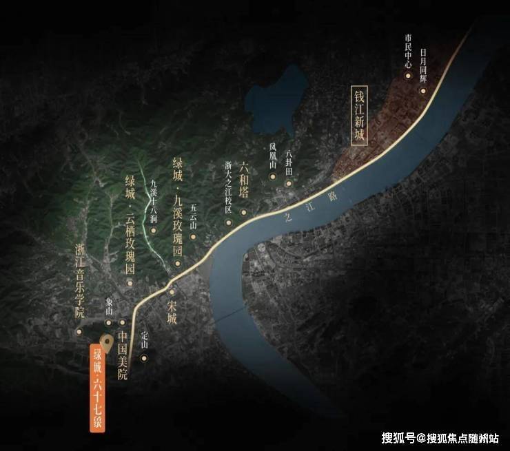 背枕西湖群山,面向钱塘江水,蜿蜒其中的之江大道,串联着岁月的故事与未来的憧憬.从承载着历史沧桑的六和塔,到闪耀着现代光辉的钱江新城;从古木参天的九溪玫瑰园,到洋溢着艺术气息的中国美院象山校区,六十七象安然静卧,沐浴着城市发展的璀璨辉芒.