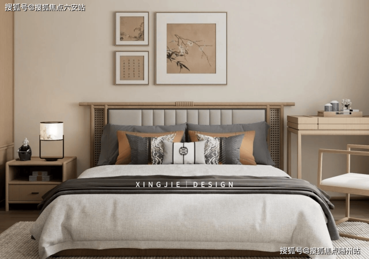 主卧以米白与原木为基调,宋式矮柜与素雅床品延续“去繁从简”的美学 。窗外天光云影纳入室内,呼应宋人“卧游山水”之趣。儿童房在宋式美学中融入现代童趣,让东方审美与活力温度并存 。