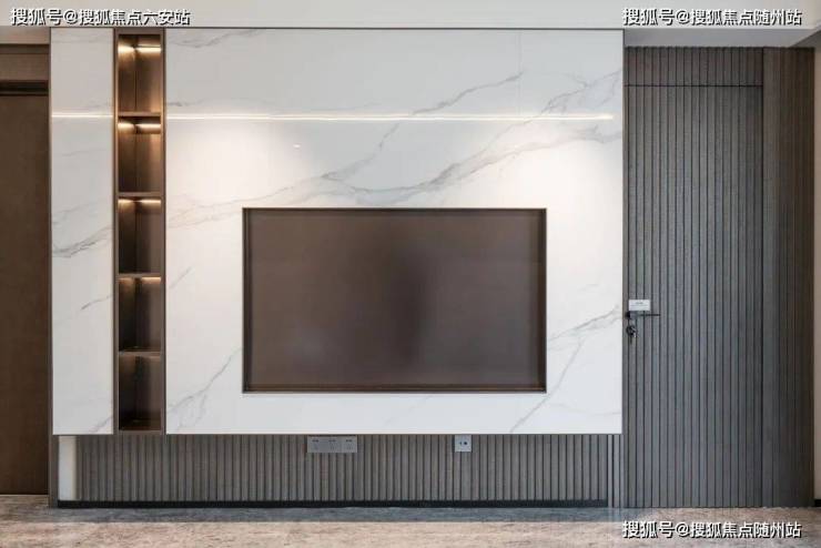 比如建筑面积约137㎡户型(升级装修),整体设计现代典雅,客厅用天然石材来铺装,奢适感拉满,背景墙采用维多利亚白岩板,压金属线条,一入户,就能体味到满满的仪式感。