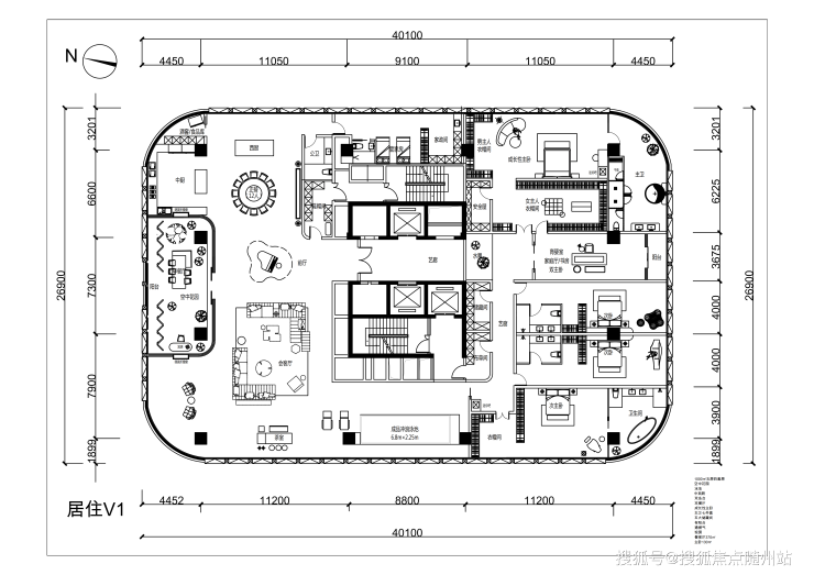•户型面积:每户约1064㎡(标准层),层高3.9米