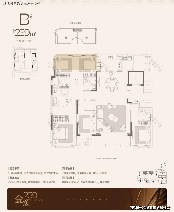 以“奢材之盛和品位之贵”为诉求,同频全球重奢风尚,荟萃奢石,配合大师的笔触与审美,再叙滨江华贵大宅。【高层210】以现代轻奢为笔触,臻选达芬奇、皇家白玉等天然奢石,造境华贵