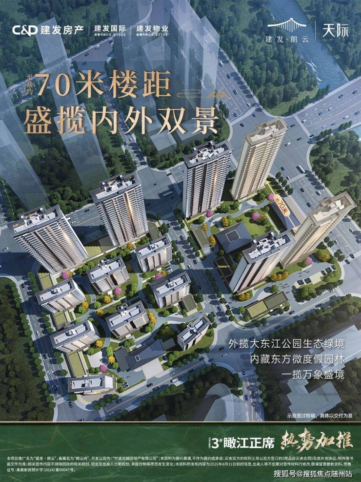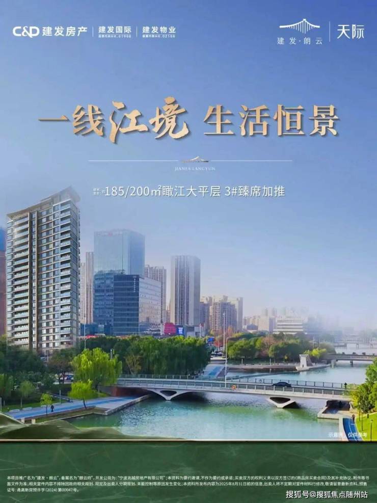 在宁波高新区核心,当“瞰江大宅”与“高阶生活”成为城市卓越人物的共同追求,什么样的居所能同时满足“IMAX级江景”“中式美学立面”“低密圈层社交”三大核心需求?建发·朗云|天际以“大东江畔瞰江正席”的稀缺区位、“约185-200㎡IMAX环幕大平层”的空间尺度、“一园三进六境”的园林意境,以及“8大主题会所”的高阶配套,给出了答案——这里不是普通的住宅,而是“甬城江岸的精神原乡”,是少数人能拥有的“峯层生活样本”。若您想亲临现场感受这一大东江畔的江景魅力,可拨打售楼处VIP专线:4009633309,或联系置业顾问:13073678721(微信同步),提前预约专属品鉴通道。