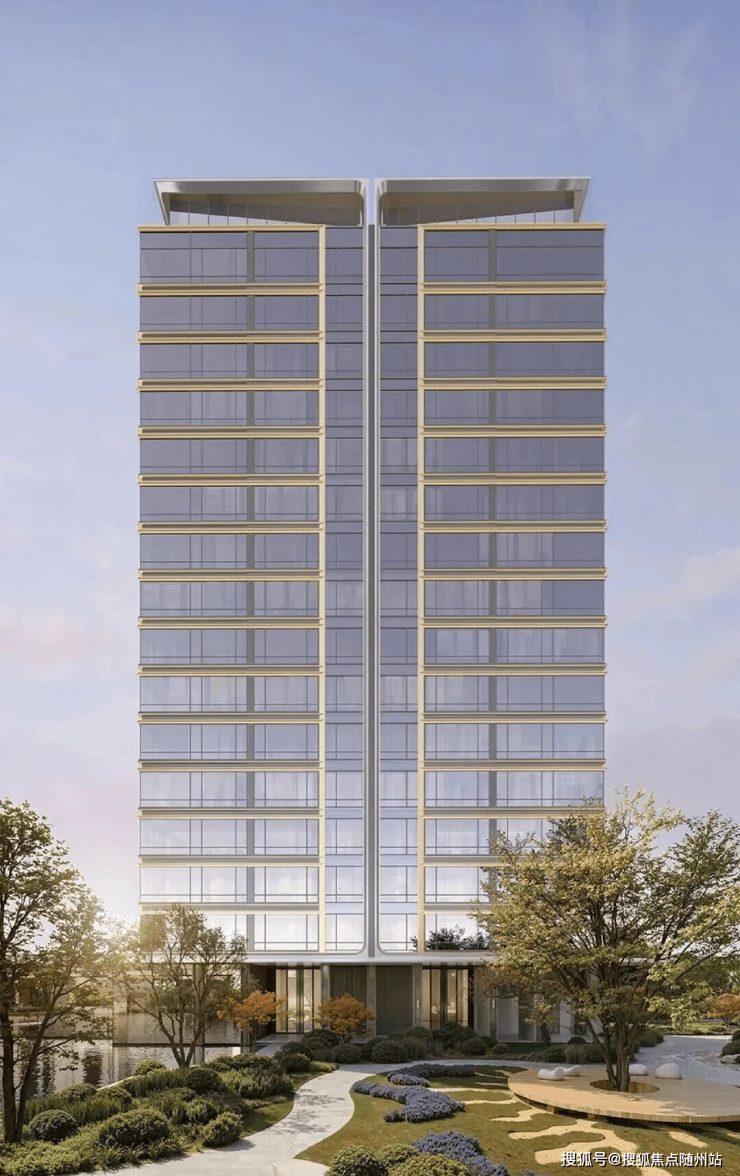 三面大尺度玻璃和铝板,270°无柱转角飘窗设计,公建化极简建筑风格、超流体屏立面,勾勒建筑的轻盈之姿,呈现与岛屿共生的悬浮质感。