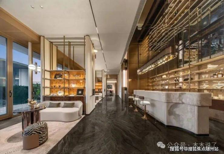 随处可见的仿大理石肌理的岩板,散发出温润而典雅的气质,妥妥的板块高品质楼盘。
