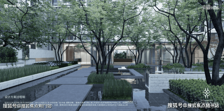 切换到小区主入口,以院落、水景、长廊形成了系统化场景串联,以泗水归堂为节点,把喧嚣城市代入静谧园区,形成酒店般的归家感受。
