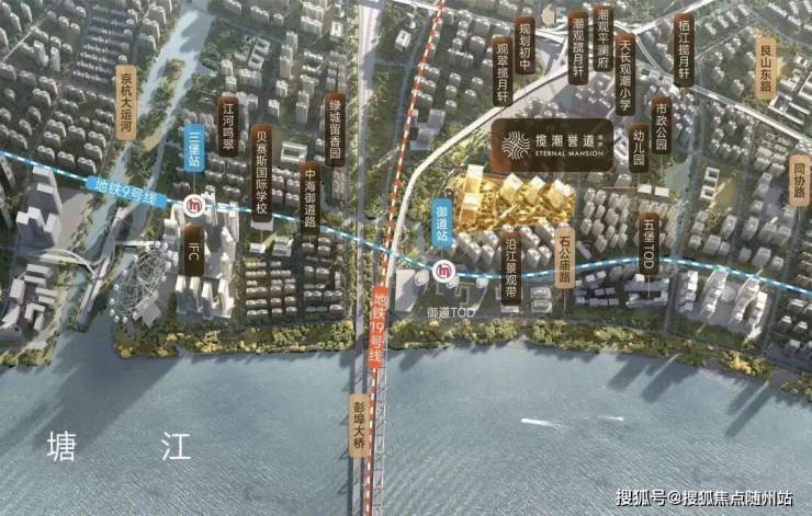 项目坐享杭州 “拥江发展” 战略要地 —— 上城区江河汇钱二核心区,距钱塘江仅 400 米,270° 俯瞰江景,城市繁华与江景壮阔无缝衔接;交通更是便捷,下楼 100 米到地铁 9 号线三堡站,1 站直达 IFC 地下层,3 公里内 16 个地铁站,全市罕见;商业顶配环绕,1 公里到在建杭州 IFC、3 公里到万象城 / 来福士,高端购物圈触手可及,还有优质学校、三甲医院加持,生活全无忧。