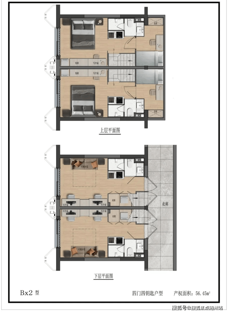 四钥匙户型:建面56-57㎡,四门独立入户,可改造为6房,满足多场景投资需求