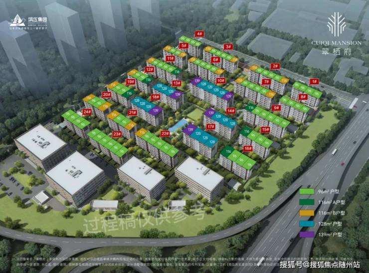 滨江翠栖府由深耕长三角的实力房企打造,是其“翠栖系”产品线在萧山的首发力作。项目坐落于滨江核心区(闻涛路与科技大道交汇处),总建筑面积约15万㎡,容积率仅1.8,绿化率超35%,是区域内罕见的低密江景社区——对比滨江新建住宅普遍2.0以上的容积率,1.8的规划意味着更宽的楼间距(最大超40米)、更多的绿化空间(社区绿地率近40%),以及更私密的居住体验。