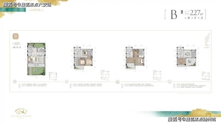 - **上叠**:约227㎡户型预留私家泳池空间,星空露台可打造观景休闲区,主卧套房配备双台盆卫浴。