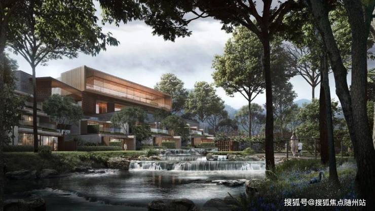 整个项目由“三脉会两谷”的势态构成,两座湖泊掩映、三面密林环抱、山涧溪流穿过。园区内规划有“一园、一轴、五享、五心、六雲”,打造了一处世外桃源之境。